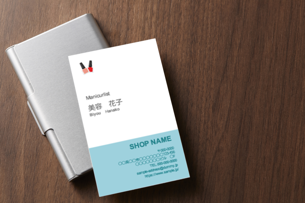 白と青で清潔感を表現しました。マニキュアのイラストが拘りポイントです。