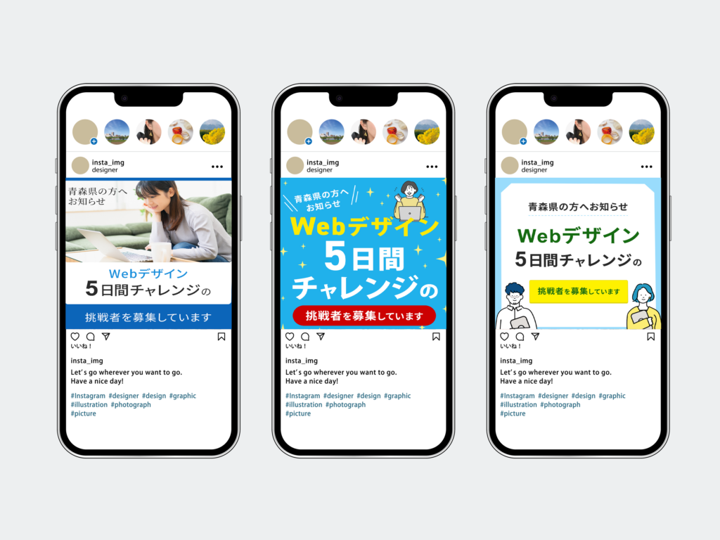 WEBデザイン5日間チャレンジのバナー3案です